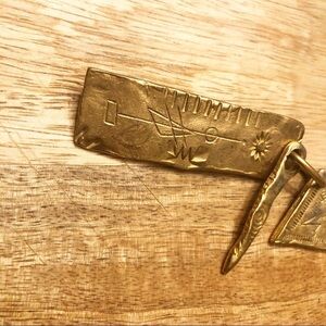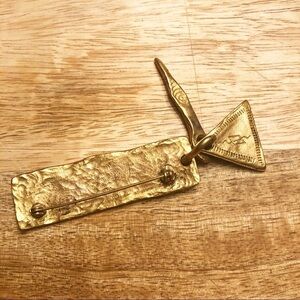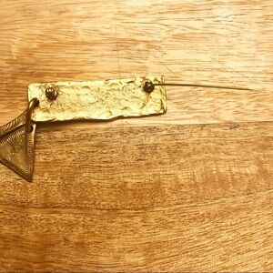 Gold Tone Solid Metal Rectangular Brooch Pin Boho