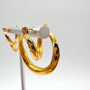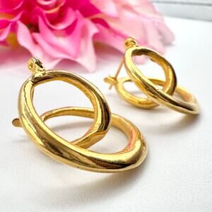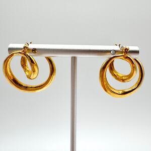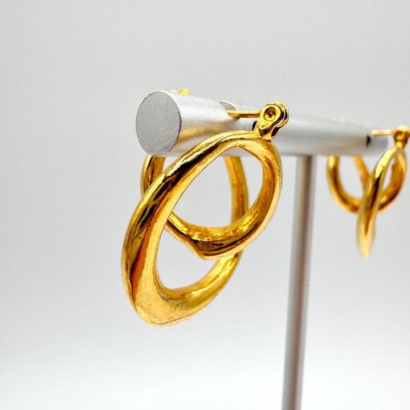 Gold Tone Spiral Front To Back Hoop Earrings Runway Chic Luxe Brutalist Abstract
