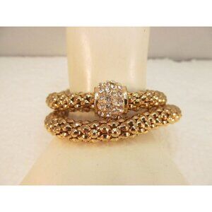 Gold Tone Stretch Metal Mesh Tube Rhinestone Bracelet 2 Piece Lot