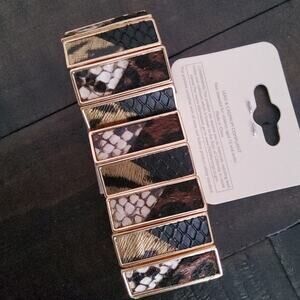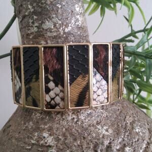 Gold Tone Stretchy Animal Faux Leather Cuff Bangle Bracelet