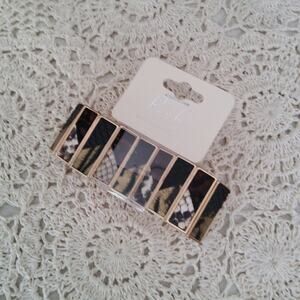 Faux fur leather animal print stretchy cuff bangle bracelet in gold tone.