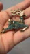 A gorgeous teal rhinestone reindeer brooch in excellent condition with no flaws and no markings. This piece has such vibrant sparkle and the gold tone detailing adds a beautiful touch. Perfect for holiday outfits, gift giving, or for collectors who love festive jewelry.