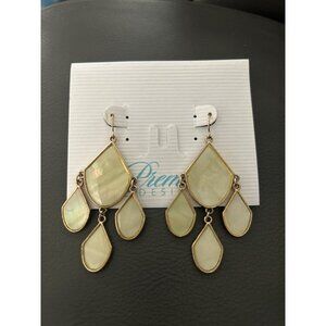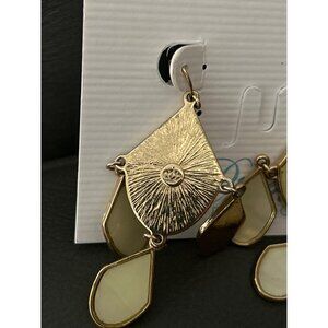 These elegant teardrop dangle earrings by Premier Designs feature a sophisticated gold tone and mother of pearl inlay, creating a timeless and luxurious appeal. The cascading teardrop shapes add a touch of elegance to any outfit, making them a versatile accessory for both casual and formal occasions.