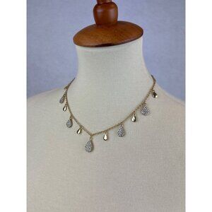 This elegant necklace features alternating gold and crystal teardrop charms. The crystal accents add a touch of sparkle for a refined look.