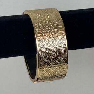 Gold Tone Textured Hinged Bangle Cuff Bracelet