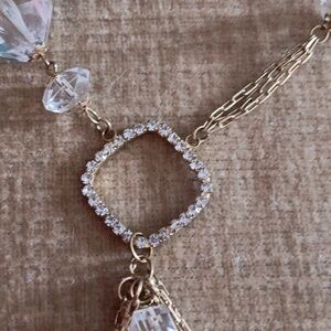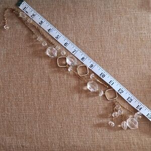 Gold Tone Three Strand Rhinestone Clear Man Made Beaded Drop