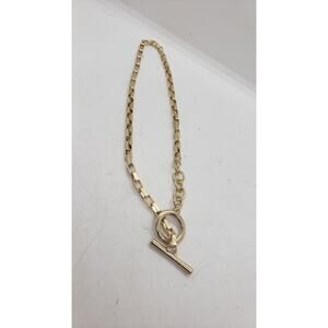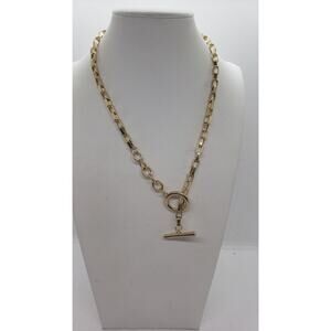 Gold Tone Toggle Necklace Square Link Chain Geometric Statement Jewelry 18 Inch