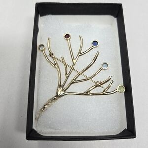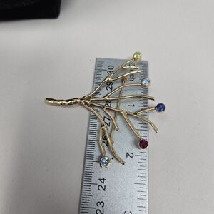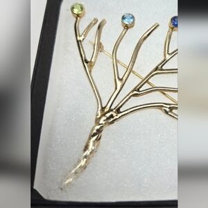 Gold Tone Tree Of Life Brooch Pin-Colored Stones Womens Twisted Trunk Branches