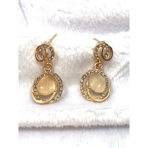Gold Tone Trendy Round Drop Earrings with Cubic Zirconia Material - Zinc