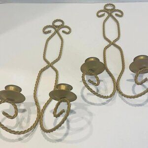 Gold Tone Twisted Metal Wire Double Candle Holder Wall Sconce Home Interiors~SET