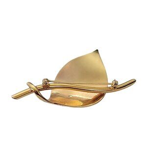 Gold Tone Vintage Ribbed Minimal Leaf Branch Brooch Pin E962