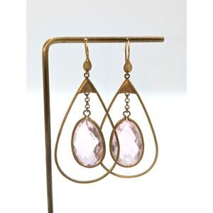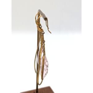 Gold Tone Wire Teardrop Large Pale Pink Faceted Glass Dangle Earrings