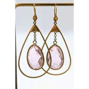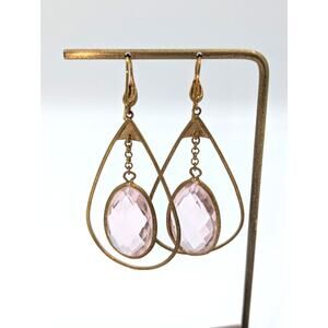 Gold Tone Wire Teardrop Large Pale Pink Faceted Glass Dangle Earrings. Hook Wire. Pre-owned, these earrings are in great condition.