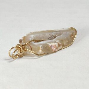 Gold Tone Wire Wrapped Agate Natural Raw Geode Druzy Sliced Stone Pendant Boho