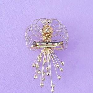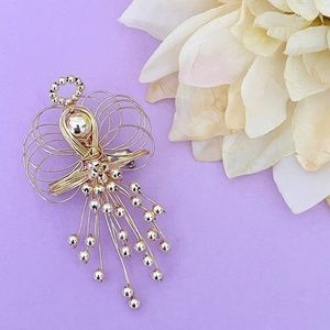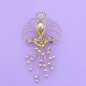 Gold Tone Wire and Bead Angel Pin Brooch