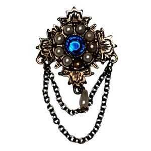 Gold Tone With Blue & Faux Pearl Victorian Design 2 inches Vintage.