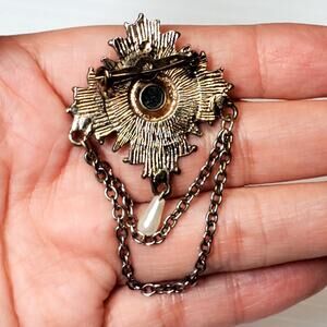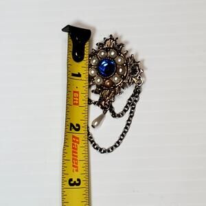 Gold Tone With Blue & Faux Pearl Victorian Design 2" Vtg