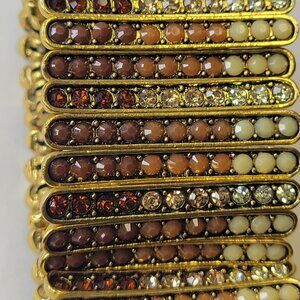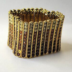 Gold Tone With Brown And light Green Rhinestones Paneled Stretch Bracelet