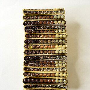 Gold Tone and Brown Wide Cuff Embellished Stretchy Bracelet