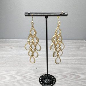 EUC gold and clear gem drop earrings with French hooks.