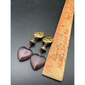 Gold Tone and Frosted Hearts Dangles Clip On Earrings Long Statement Earrings