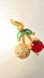 Charming gold and red cherry necklace pendant with sparkling details. A delightful addition to any jewelry collection.