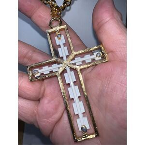 Gold Tone and‎ White Metal Large Modernist Cross Pendant Necklace