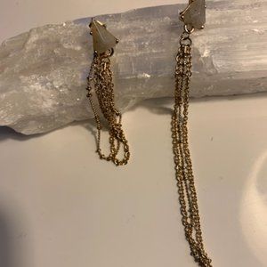 Used Great Looking earrings The front of the earring has a great triangle "stone" Cascading down the front and attaching to the back are great gold tone chains