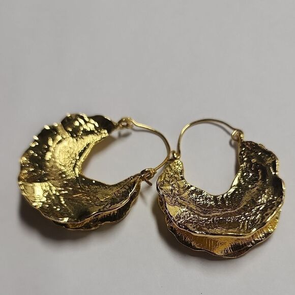 Add a touch of elegance with these stunning gold hoop earrings. Perfect for any occasion.