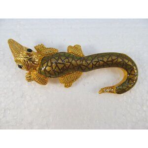 Gold Toned Alligator Brooch with Green Enamel Detailing