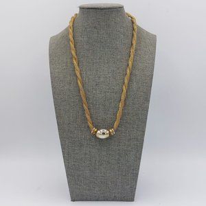 Gold Toned Mesh Twisted Chain Silver Toned Beads Easy Hook Clasp 18"