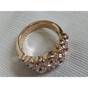 Gold Toned Metal Orange Pink Rhinestone Encrusted Women's Statement Fashion Ring