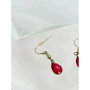 Vintage gold toned red teardrop dangling earrings. Gold toned wire. Cute and minimalist. Beautiful and simple piece. Gemstone is imitation.