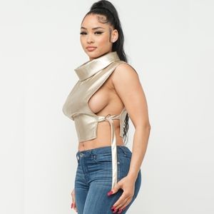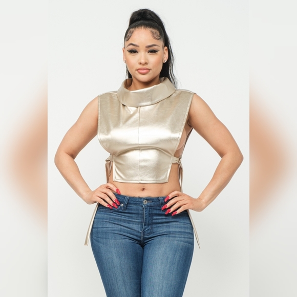 *Gold PU leather turtleneck top