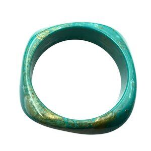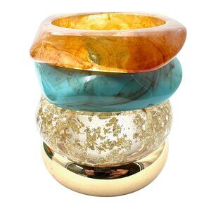 Gold Turquoise Swirl Lucite Wide Bangle Bracelet Retro Chic Style Stackable