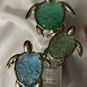 Elegant gold turtle wallflower plug with sparkling blue and green accents. Perfect for adding a touch of nature to your space. Comes with Waikiki beach Coconut fragrance refill.