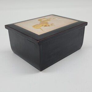 • Black lacquered wood with gold unicorn design