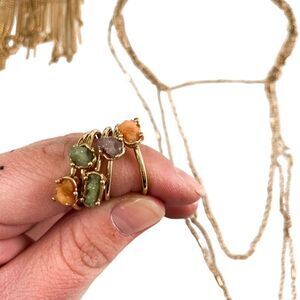 Gold Variety Necklace Dangle Chain Earrings Gold Multicolor Stone Bundle