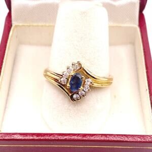 Gold Vermeil Sterling Silver and Blue Sapphire Ring Size 7.5