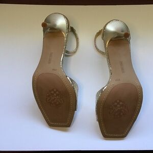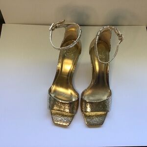Gold Vince Camuto ankle strap leather fete gold crinkle stiletto