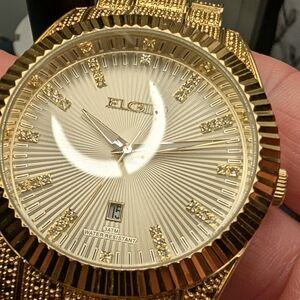 Elegant gold woman's watch with a classic design. Perfect for any occasion.