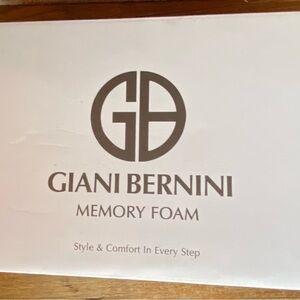 Elegant and comfortable 2 1/2 inch wedge sandals Giani Bernini in a stunning gold hue. Perfect for any occasion casual or dressy. Soft manmade upper, inside sole very soft suede memory cushion. Gently worn, only some wear on soles see photo.