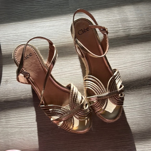 Gold Wedges Worn once for a few hours Made in Brazil Eur 41 / Bra 39/ US 10 Will fit 8.5 / 9
