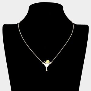 Gold Chain with White Enamel Cocktail Beverage Martini Glass Shaped Pendant Necklace Fashion Statement Jewelry Accessory