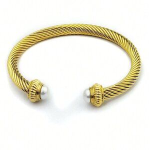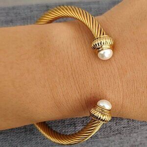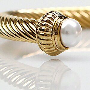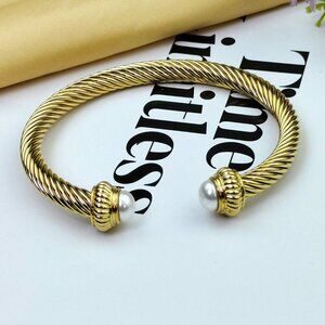 Gold Women's European Stainless Steel Cable Wire Cuff Bangle faux pearl