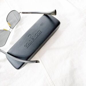 These are some awesome aviator old-school sunglasses by Gold & Wood from Paris with genuine horn temples. The lens have some slight marks, nothing that impairs vision and only noticeable if held up to direct light. There is no Rx in the lens. Comes with original case.. Because of the horn temples, even though they are buffed there is a natural variation in pattern, not even to the point of noticing unless held up to a light in close proximity. If you hold them out over a foot away it doesn't even show.