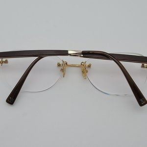 This listing is for authentic Gold & Wood Ta0v24 Mercure Shiny Champaign Gold / Brown Tanganyika / Sunflower Bolivar / Brushed Brown Acetate Endtips Rimless Eyeglasses Frame Luxembourg 49-17-130 ULTRA RARE. Current lens are unknown Rx prescription and will need to be replaced with lens of your choice (FRAME ONLY). Eyeglasses frame is in excellent pre-owned condition, (see photos). Size: 49-17-130. Made in Luxembourg. Please see pictures to make your complete condition assessment.