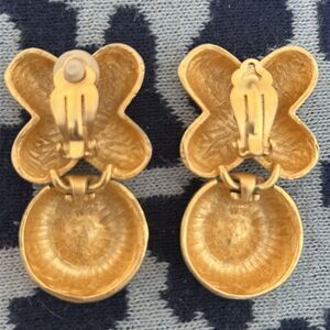 Bold gold statement clip on earrings. Perfect for adding a touch of glamour.