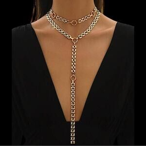 Gold Y Lariat Multilayer Necklace Specialty Chain Link