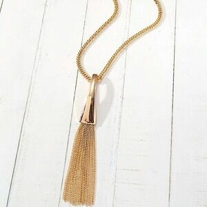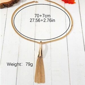 Gold multiple strand y lariat tassel chain link necklace measures 28”-31” adjustable size lengths.